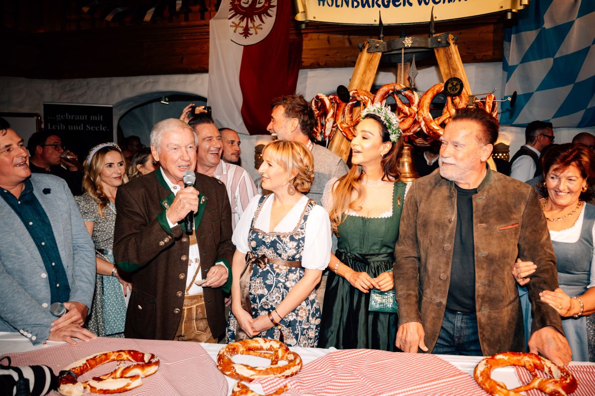 Zuvor hatte Arnold Schwarzenegger gemeinsam mit Sohn Christopher, Familie Hauser (Balthasar, Magdalena, Maria, Elisabeth, Johannes), Ralf Moeller, Jürgen Klopp, Verona Pooth, Lena Gercke, Pamela Reif, Sasha, den Skilegenden Fritz Strobl und Leonhard Stock sowie Metzgermeister Hans Holnburger den offiziellen Auftakt am Weißwurstkessel gestaltet. 2.800 Gäste, darunter viele Stammgäste und Freunde des Hauses, erlebten einmal mehr die „beste Weißwurstparty der Welt“, so ein bestens aufgelegter Arnold Schwarzenegger.