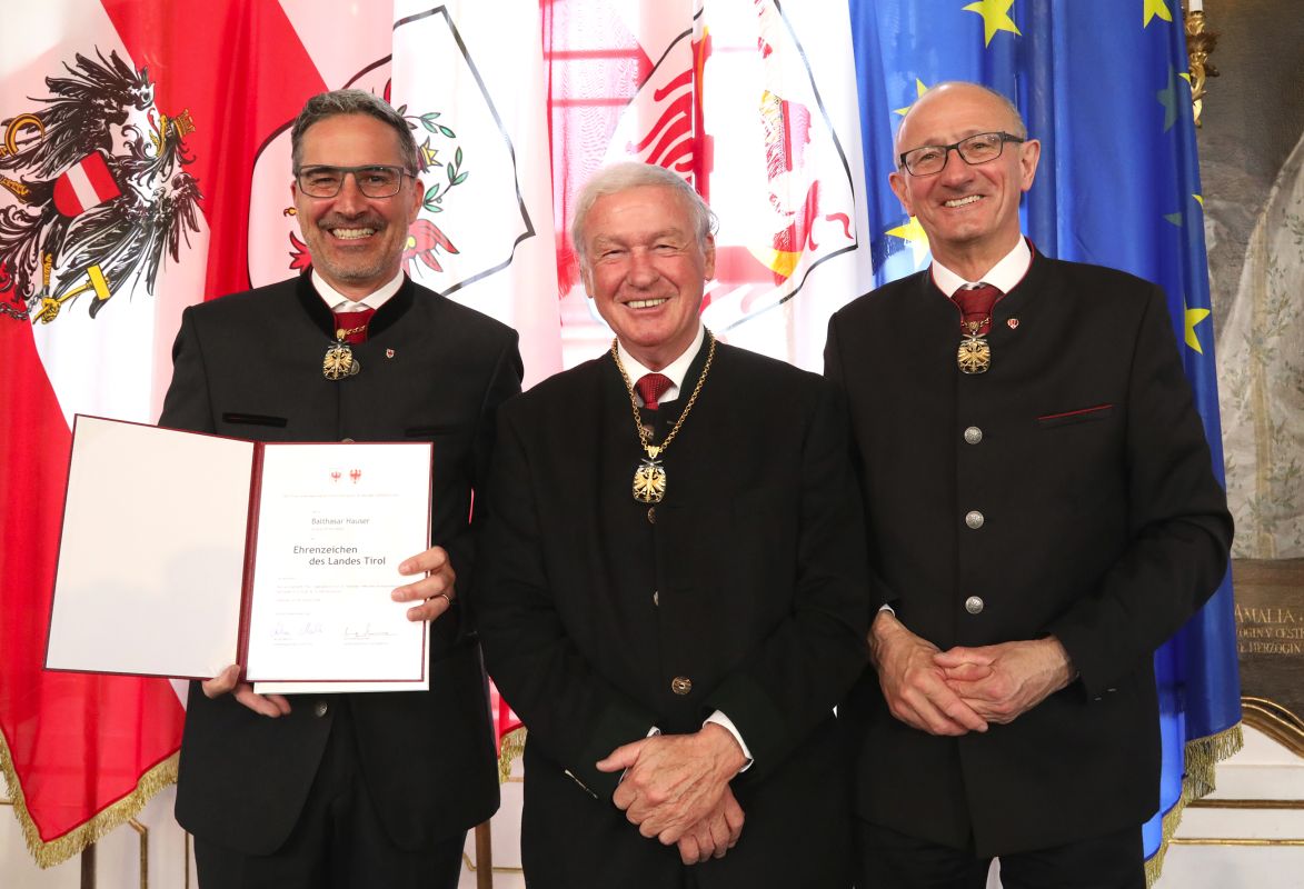 Die Laudatio zur Verleihung des Ehrenzeichen des Landes Tirol an Balthasar Hauser beleuchtete einige seiner vielfältigen, visionären Taten sowie seinen Pioniergeist und sein soziales und regionales Engagement: