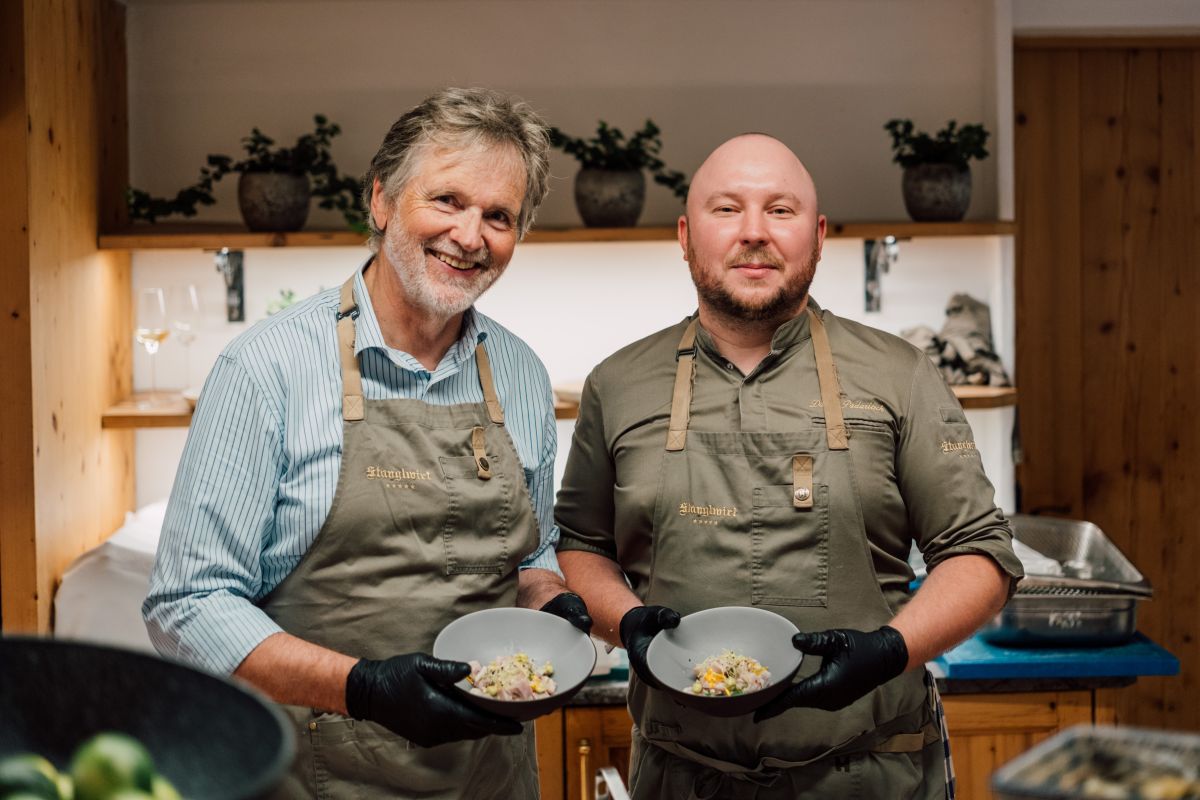 Fliegenfischer-Legende Rudi Heger mit Küchenchef Daniel Padaritsch