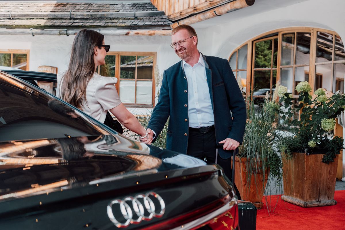 Damit Ihr Urlaub im Stanglwirt schon beginnt noch bevor Sie unser Bio- und Wellnessresort betreten, bieten wir Ihnen einen exklusiven Shuttle-Service mit direktem Transfer von und zum Bahnhof oder Flughafen. In unserer luxuriösen AUDI-Flotte samt Chauffeur genießen Sie eine entspannte und sehr komfortable An- und Abreise und können in aller Ruhe die wunderschöne Bergumgebung bestaunen.