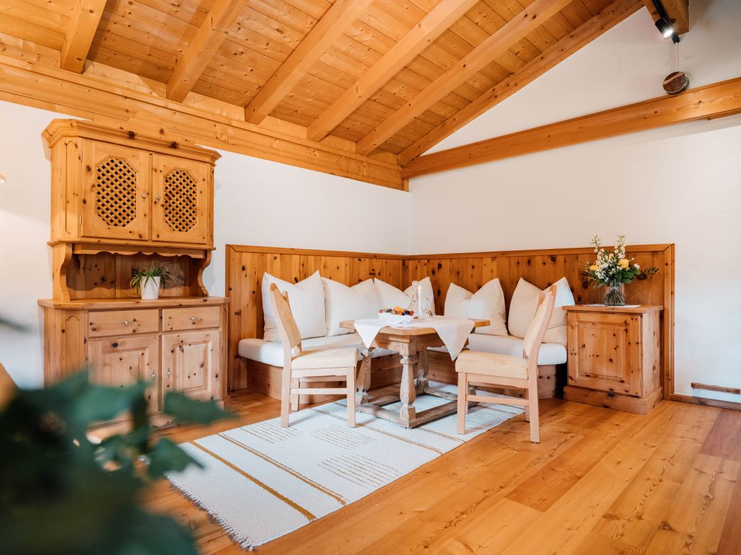The exposed roof truss of this traditional yet ultra-modern top floor apartment with 92 m² of living space radiates a delightful ambience, and catches us off-guard with its coherent contrasts and choice of exquisite materials. At its heart is a spacious and superbly appointed kitchen-cum-living room, the ideal place for social gatherings of family and friends. Another spacious living room, two bright bedrooms and two bathrooms complete the generous space in the Geigerhäusl. Several flatscreen TVs provide the technological luxury, which is the perfect complement to the homely "Alpine lifestyle" furnishings.