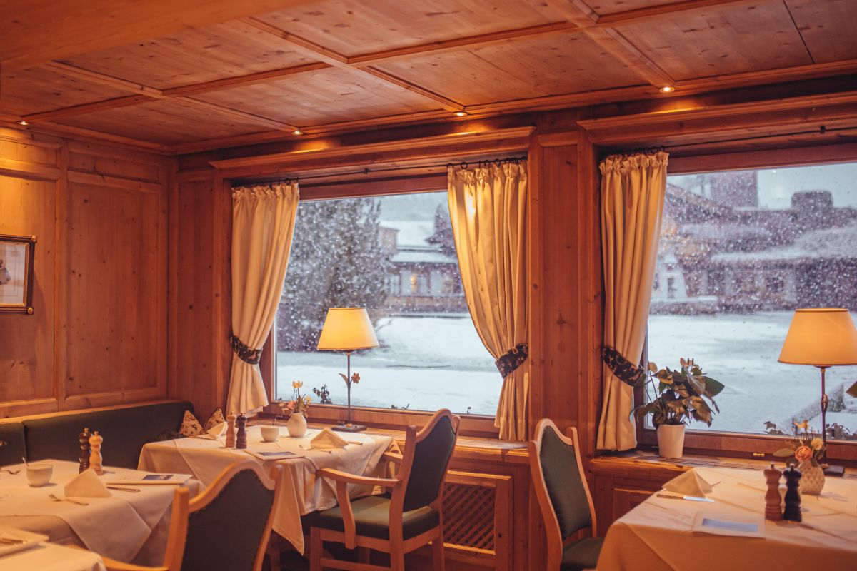 In winter, the cosy Stangl Alm dining room is an inviting place to savour the flavour of your Stanglwirt stay beside an open fire, accompanied by the soothing sounds of the zither.